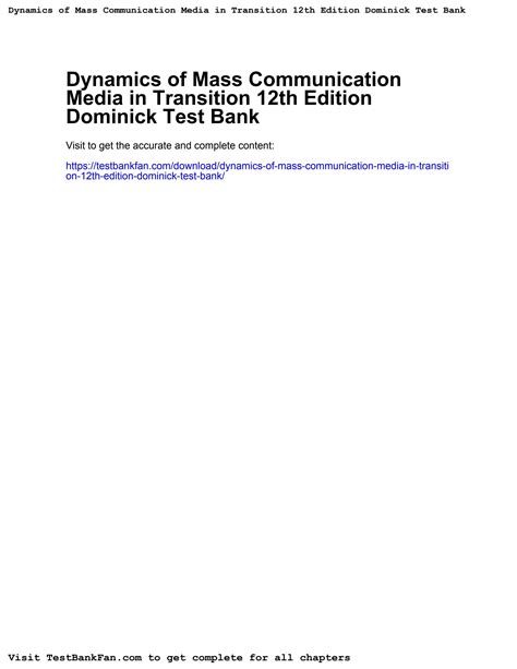 Download online DYNAMICS OF MASS COMMUNICATION 12TH EDITION DOMINICK Epub Library Genesis